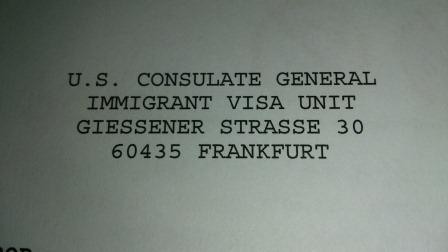 We are almost done! After deciphering the pages and pages of utterly confusing forms and corresponding directions, and still getting it wrong, we have received the notification for my wife’s appointment at the Frankfurt Consulate.
