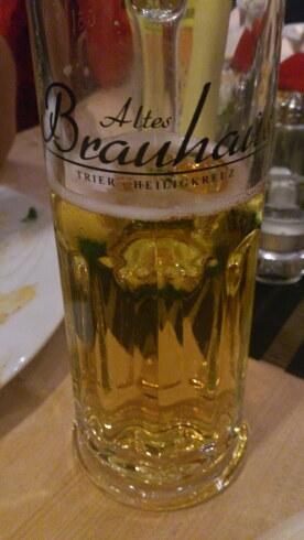 After returning home for dinner we prepared ourselves to “comfortably” have that beer with a bunch of our friends plus my wife’s cousin and her boyfriend. Comfortable, or gemütlich, is one way Germans would describe going to have a quiet drink. This evening my wife and I were on our own though, the little guy was to spend his own gemütlich evening with his Grandpa. Our destination for the evening? Why the Brauhaus of course! Are you sensing a pattern here? But why not when you have a nice place within walking distance with good atmosphere and excellent food? There would be no schnitzel for me this evening though, just beer and conversation. As an added bonus to our usual crowd my wife’s best friend brought her dad and brother since they were in town from Poland.